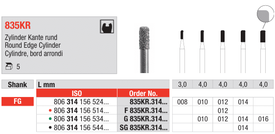 The Bur 835KR is a high-performance dental instrument designed for precision and efficiency in various dental procedures. Known for its ability to provide smooth and consistent results, this bur is ideal for use in cutting, shaping, and finishing hard dental materials such as enamel and composite resins. The 835KR is commonly used for cavity preparation, crown and bridge work, and other restorative treatments.