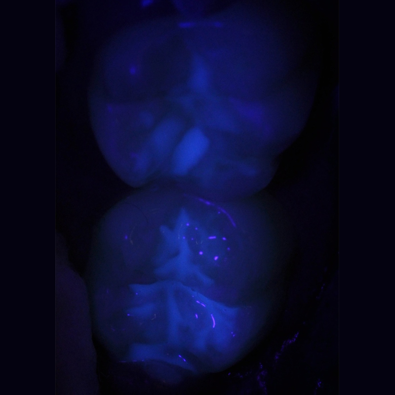UltraSeal XT hydro is a light-cured, radiopaque fluoride-releasing composite sealant. It is stronger and more wear resistant because it is a 53% filled resin and has less polymerization shrinkage than competitive products. The spiral brush action of the Tip causes shear thinning of the filled, thixotropic UltraSeal XT hydro, reducing its viscosity as it is placed. The resin firms when shear thinning ceases and placement is complete, preventing it from running before it can be light cured. The hydrophilic chemistry with its characteristic thixotopic nature chases moisture (that in hydrophobic sealants can cause sealant failure) deep into the pits and fissures on a microscopic level. Once there, the advanced technology securely bonds the sealant to the enamel, increasing marginal retention and reducing microleakage.